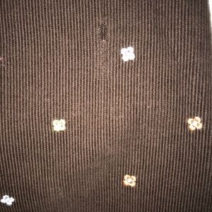 Dark brown corduroy with an owl appliqué. Embroidered multicolored flowers all over. Has a 3/4 length zipper in the back and darling frilly hem made of the same material.