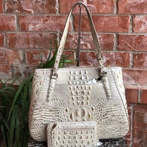 Brahmin Adina Tote Silver Birch+ Suri Wallet NWT