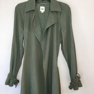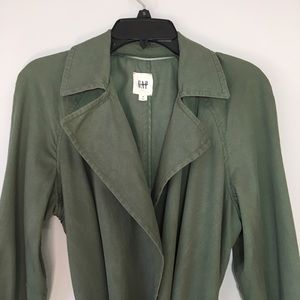 Stunning, classic Gap trench Coat in great condition! Light material making it comfortable and perfect to layer underneath it! In an Olive green color and with pockets!