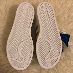 Classic fashion sneaker with leather upper featuring three-stripes branding and rubber shell toe.Contrast heel tab and rubber cupsole.
