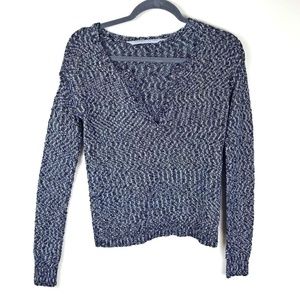 Athleta Speckled Weekend Pullover Sweater Top Heather Navy Blue White Size XXS