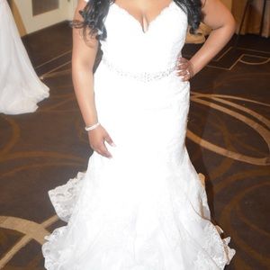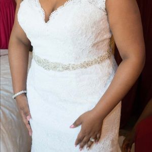 Size 10, fit and flare, simi off shoulder, low back with Lace detail, floor length gown.