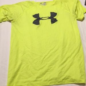 Neon Yellow, Grey and Orange and Grey Under Armour Shirts
