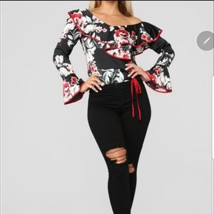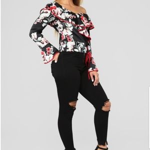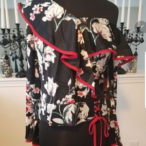 New Gorgeous Red Floral Ruffle Blouse