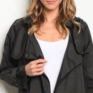 New black hooded lightweight rain coat. Almost like a poncho. Even comes with a pouch to put it in for travel.