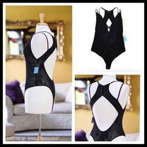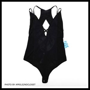 FREE PEOPLE BODYSUIT BLACK LACE BOHO BODYSUIT A2C