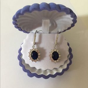 New Leverback Halo Sapphire earring in 18K White Gold with gift box