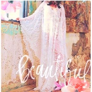 love! sexy beautiful flowy pretty wavy edge kaftan fabric feels breathable extremely soft eyelash lace beach wear women swimsuit bikini maternity cover up long dress floor length long sleeve gown white transparent robe maxi boho