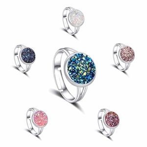 Druzy White Chunky Crystal Adjustable Silver Ring