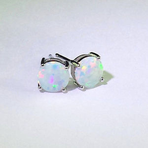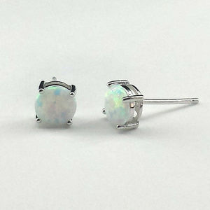 New Beautiful and dainty studs, made with solid 925 sterling silver with rhodium to prevent tarnish. This are post earrings that come with a 6mm white lab opal gemstone. This are perfect for someone who loves opal or has an October birthday.