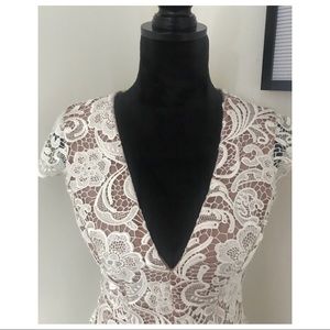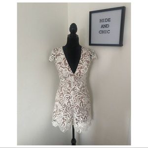 DRESS THE POPULATION LACE PLUNGING V-NECK ROMPER