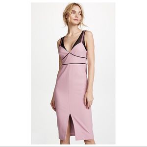 CINQ A SEPT SLEEVELESS V-NECK MIDI DRESS