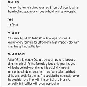 YSL's new liquid matte lip stain: Tatouage Couture. A revolutionary formula for ultra-matte, high impact color with a lightweight, naked-lip feel.