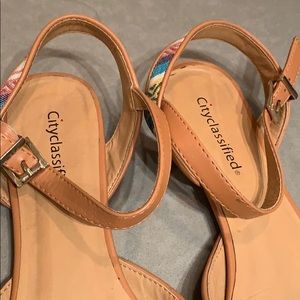 Pointed toe. Adjustable strap around the ankle. Very lightly used