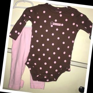 Carters brand 3 pc. Baby girl outfit setđź’• all in excellent condition. Includes: 2 onesies & 1 pair of pants. Size 6m