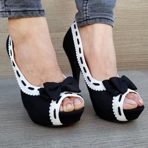Peep Toe Pin Up Rockabilly Heels Pumps W/ Bow