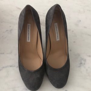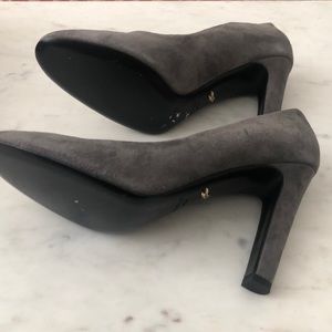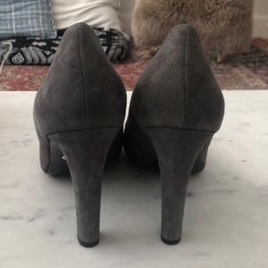 Gently used grey suede heels. 4 inch heel. Round toe. Fantastic condition! Likely wore two, maybe three, times.