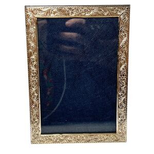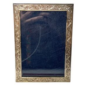 Shiny and burnished silver tone metal alloy.