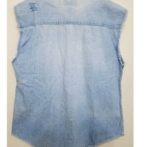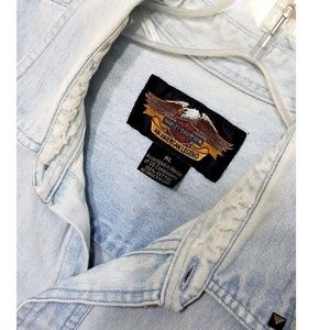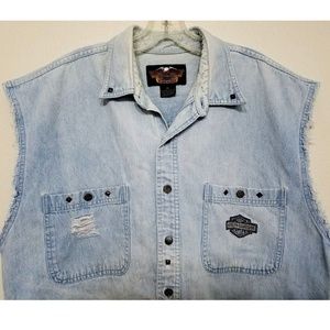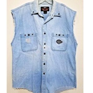 Unisex Adult Harley Davidson Denim Button Down Sleeveless Shirt Embroidered Logo Distress XL