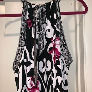 WHBM, beautiful, halter dress, ties at the neck, with pockets! Black & White with pretty purple flowers. This dress is so pretty!