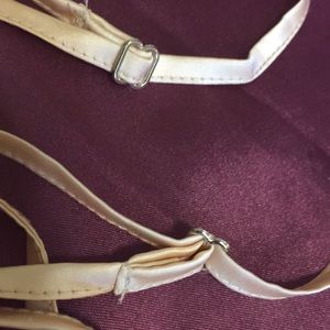 Adorable cropped cami in a satiny cream/peach tone. Perfect top for maxi skirts, blue jeans, or layered with a sheer or crocheted top!