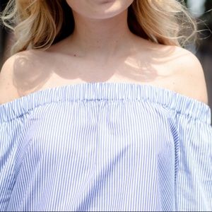 Zara Blue White Stripe Off Shoulder Top