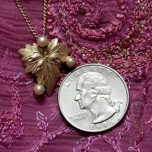 Relisted -Vintage 12k gold filled leaf necklace faux pearls