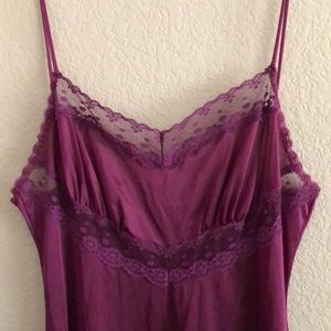 1970s true vintage plum nylon tricot long maxi nightgown with cami straps and plum lace trim. Brand is Blush. Size is M but runs a little small.