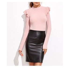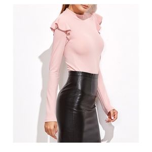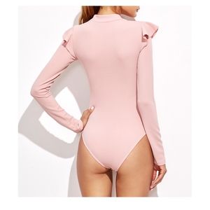 Blush Pink Mock Neck Long Sleeve Ruffle Bodysuit
