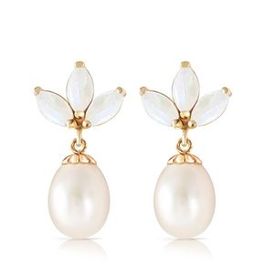 14K. SOLID GOLD DANGLING EARRING PEARLS & OPALS
