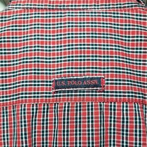 US POLO Button Down Shirt Men’s Size L Short Sleeve Red Plaid Gift For Him