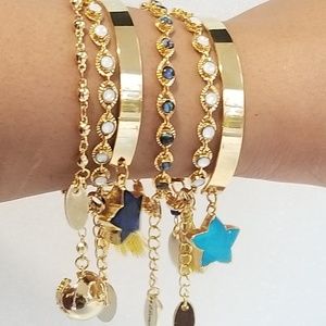 Very pretty high quality 16k gold elactroplated cuff with turquoise star charm perfect for every day use. Layer it or wear separately.