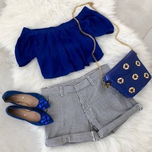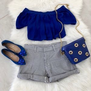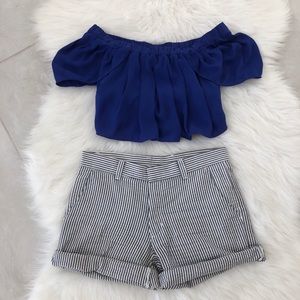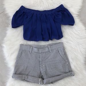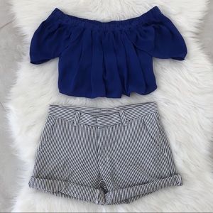 Bundle of Blue Crop Top & Striped Shorts, Medium