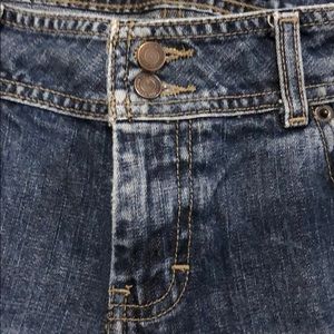 American Eagle size 6 flare legged, cropped jeans, inseam measures 24” had double buttoned waist
