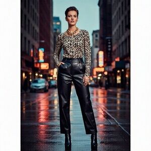 NWT. ZARA Leopard Print Jeans with zipper. High-Rise /Skinny. Ankle length. Nice stretch.