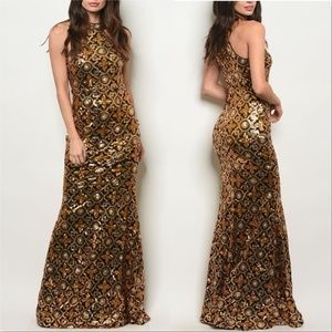 WOW them all in this amazing sequin gown. This is beyond stunning with gorgeous sequin detailing, a classy high neck and sleeveless style.
