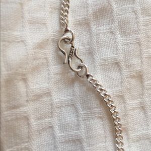 This necklace has genuine abalone stones and later in sterling silver, also stamped 925. It has a clasp to buckle
