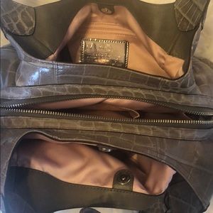 NWT Gorgeous embossed Maggie Bag by Coach. Rare and from the Limited Edition Collection. Has three separate compartments with pockets inside each. Stunning bag!