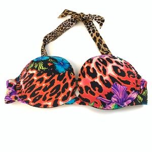 Very Victorias Secret Bikini Top 34C Bombshell Adds 2 Cup Sizes Floral Leopard Red Black Purple Blue Multicolor