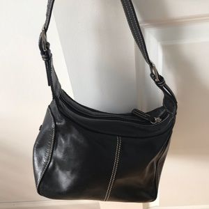 Authentic black shoulder leather bag. Size L 8 inches H 6 inches. Good shape non smoking no pets home.