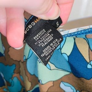 BCBG MAXAZRIA MIDI Skirt. Excellent condition, size small. Shows no signs of wear. 7% spandex. Has little ruffle around bottom. Has assorted color designs. Clean no stains or holes.