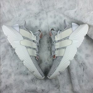 For sale are a pair of Adidias Prophere. Sneakers are white, grey, and blush. Size 6.5. New with tags. Come without box.