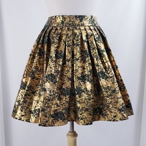 Forest Green & Gold Pleated Skirt, Pockets