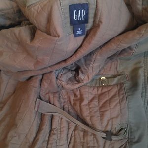 GUC. No flaws to note, just perfectly broken in. 100% cotton coat with cotton lining for a little weight. warm & substantial for cotton. metal buttons & hardware, removable hood, internal drawstring waist gives shape. great pockets. ✨Only 1 ✨ Tag S, fits S & M.