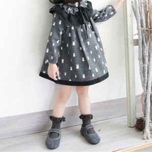Toddler Girls Bunny Pattern Long Sleeve Gray Dress