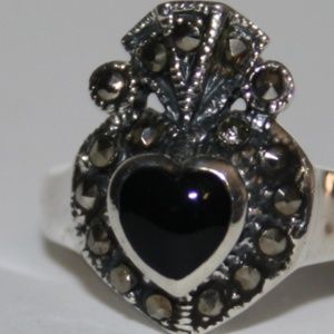 .925 onyx and marcasite claddagh ring NWT
