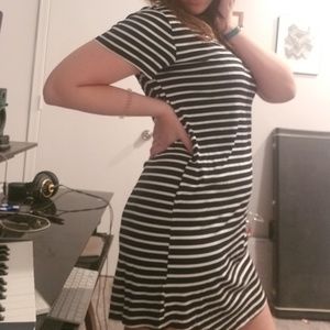 Perfect casual dress! I have one of these black ones with white stripes!! Get it while it lasts! This is a new with tags boutique item.