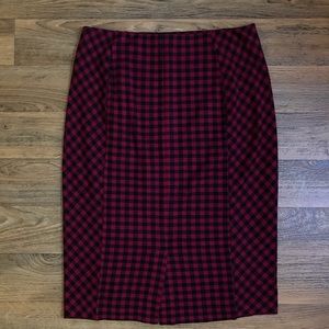 J. Jill Red Plaid Ponte Knee Length Pencil Skirt.