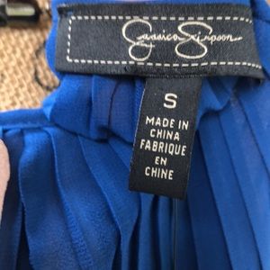This Blue Jessica Simpson Top is very flowy with pleats throughout the entire blouse. It features a bat-like sleeve detail. This blouse is new with tags!