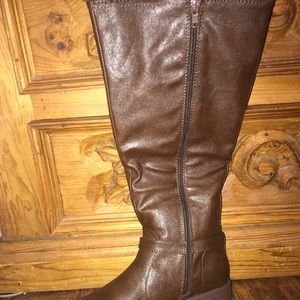New, never worn! Brown quilted riding boots with gold studs and gold buckles. Faux leather. No brand on them, but bought at Anthropologie. Zips all the way down for easy on and off. Versatile!!
